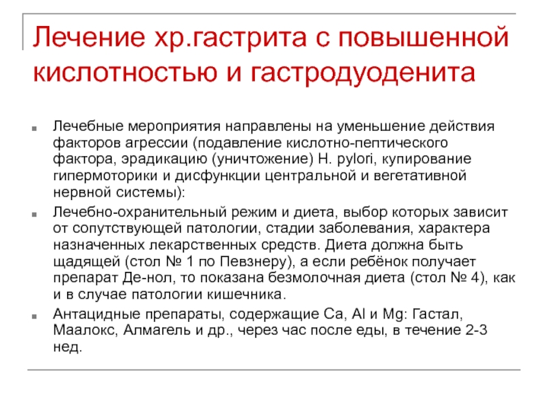 Слайд 10Лечение хр.гастрита с повышенной кислотностью и гастродуоденита