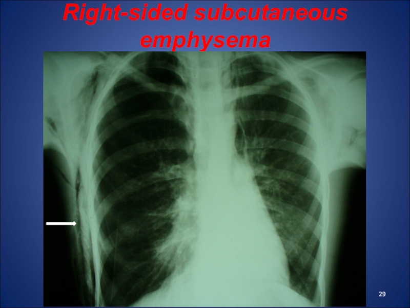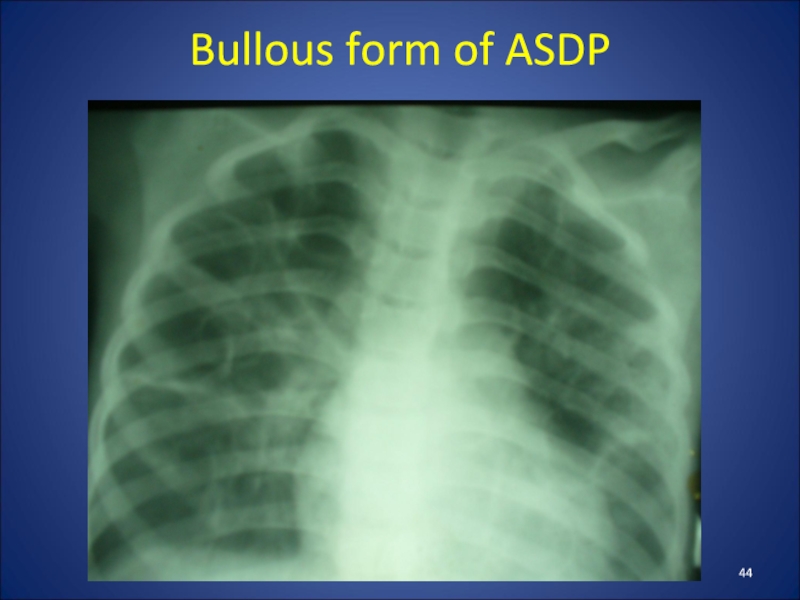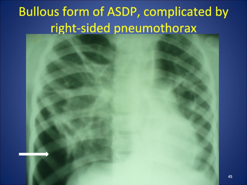 Слайд 45Bullous form of ASDP, complicated by right-sided pneumothorax