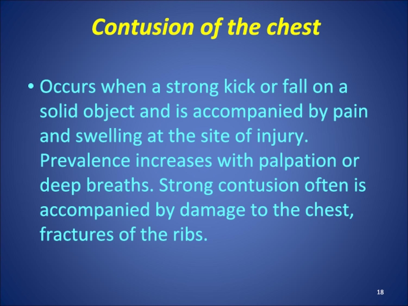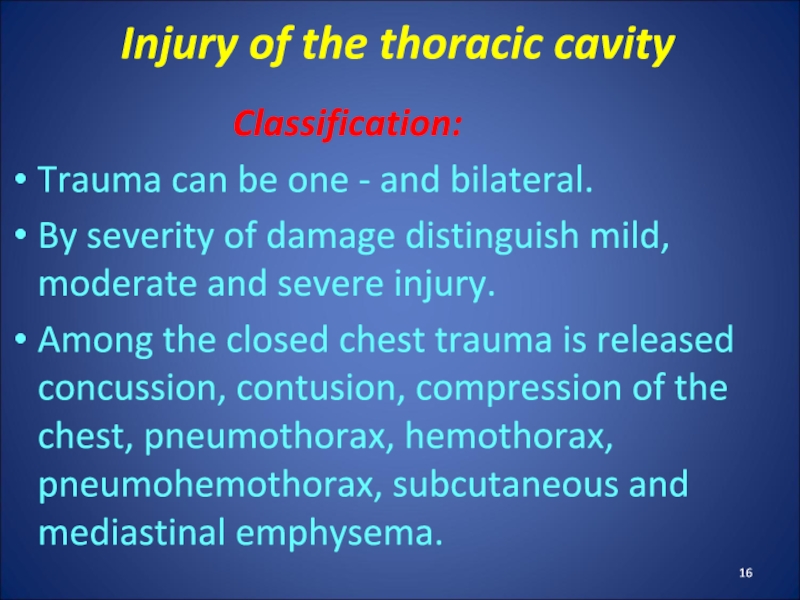 Слайд 16Injury of the thoracic cavity