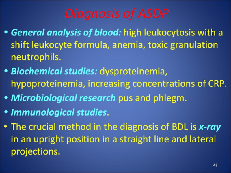 Слайд 43Diagnosis of ASDP
