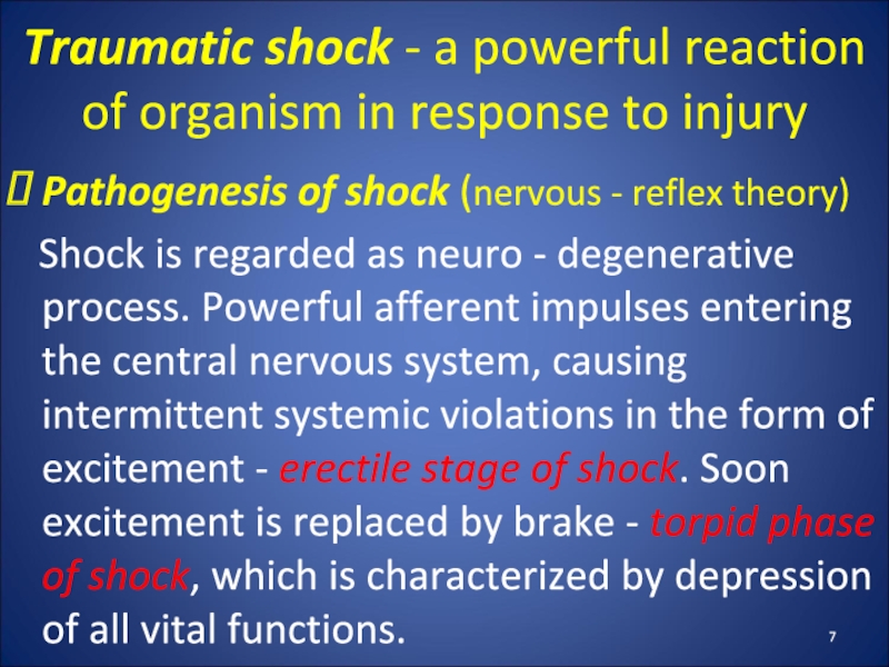 Слайд 7Traumatic shock - a powerful reaction of organism in response
