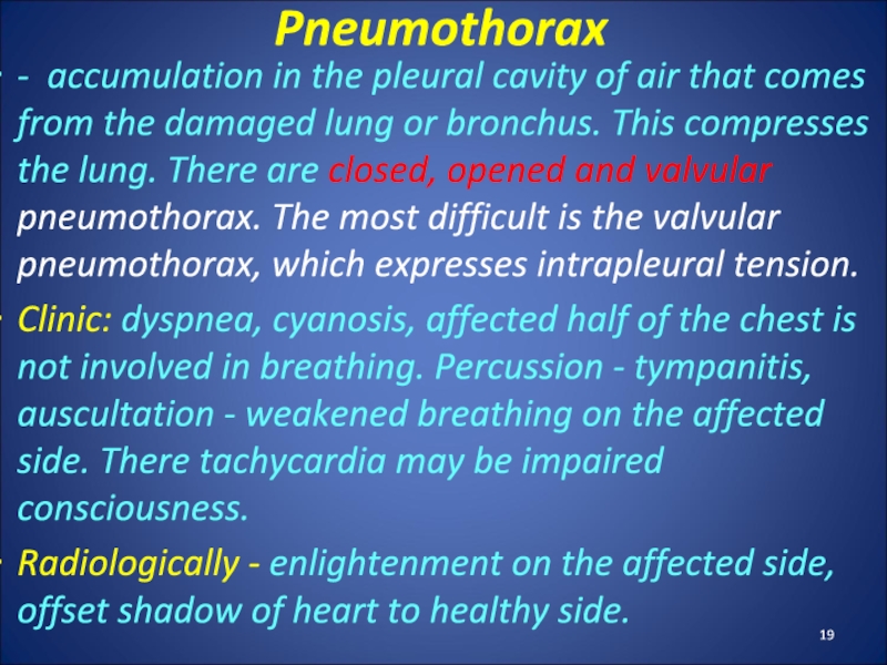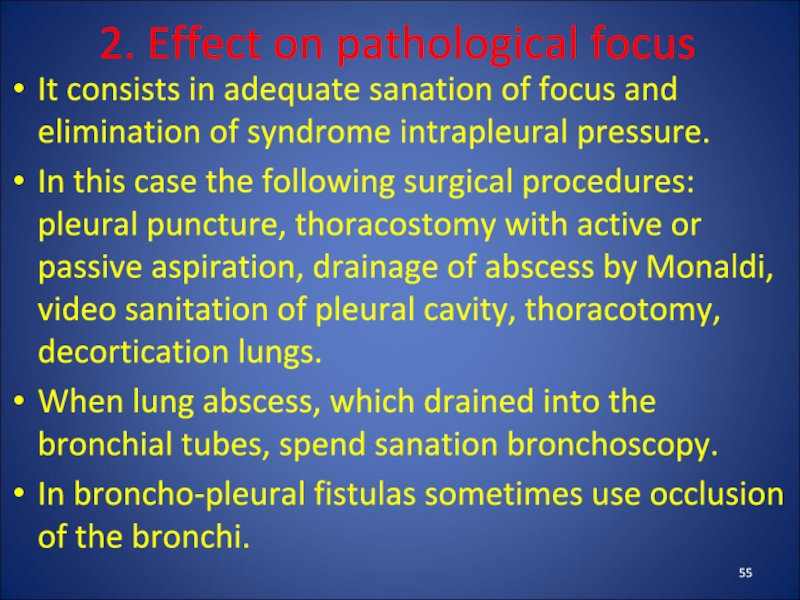 focus and elimination of syndrome intrapleural pressure.