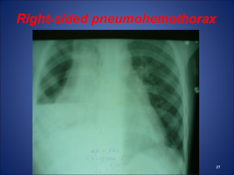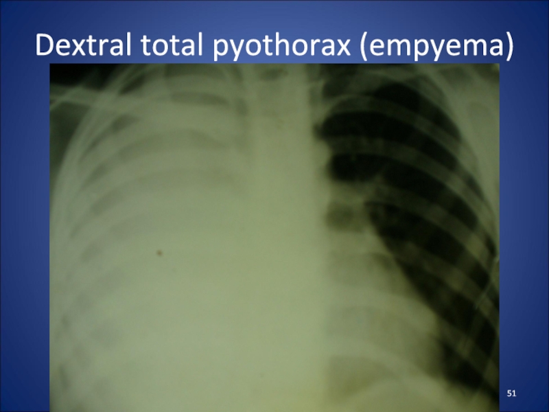 Слайд 51Dextral total pyothorax (empyema)