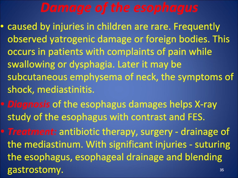 Слайд 35Damage of the esophagus