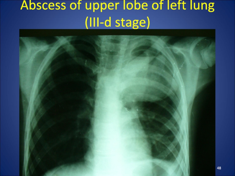 Слайд 48Abscess of upper lobe of left lung