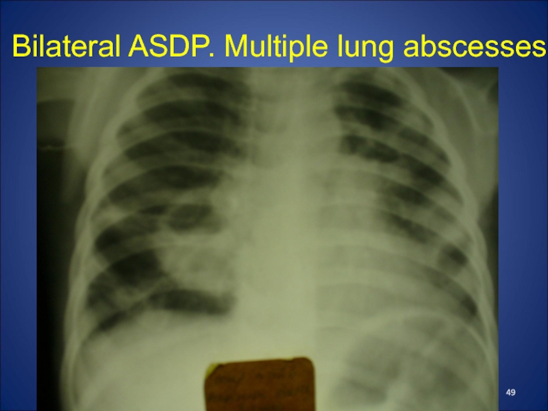 Слайд 49Bilateral ASDP. Multiple lung abscesses