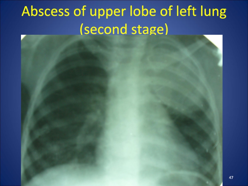 Слайд 47Abscess of upper lobe of left lung (second stage)