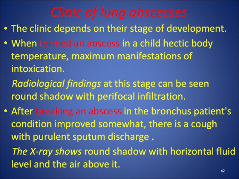Слайд 42Clinic of lung abscesses