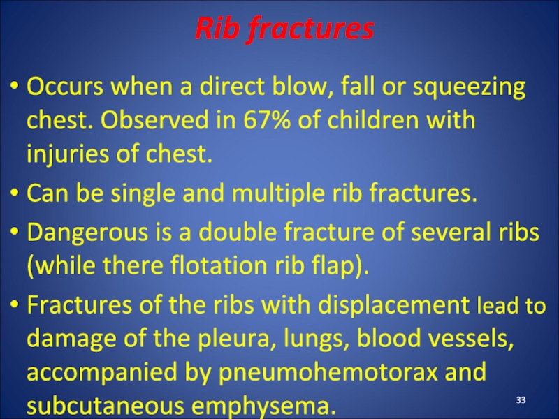 Слайд 33Rib fractures