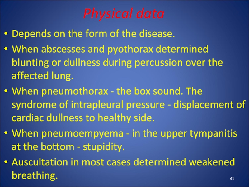 Auscultation in most cases determined weakened breathing.