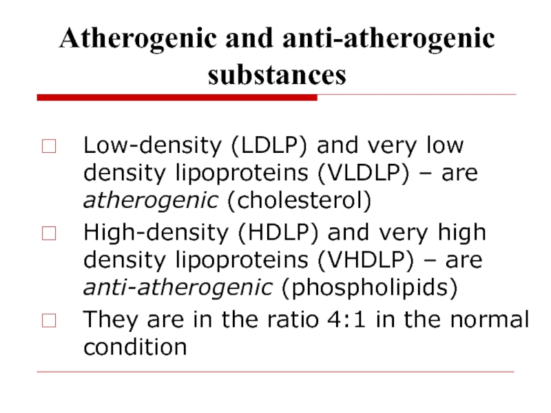 density lipoproteins (VHDLP) – are anti-atherogenic (phospholipids)
