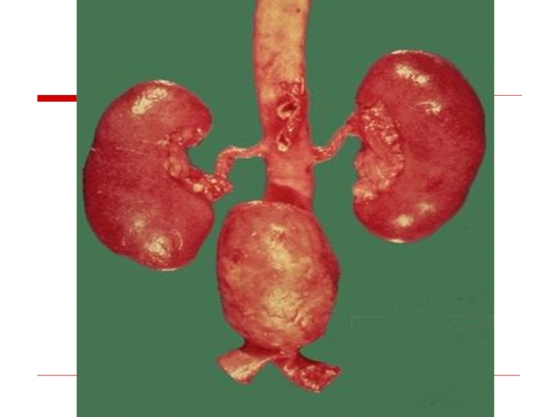 kidneys – fibrinoid necrosis of arterioles and capillary loops of glomeruli. Renal insufficiency is appearing fast