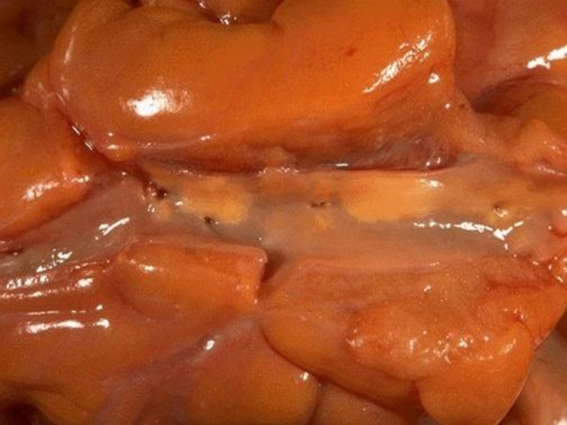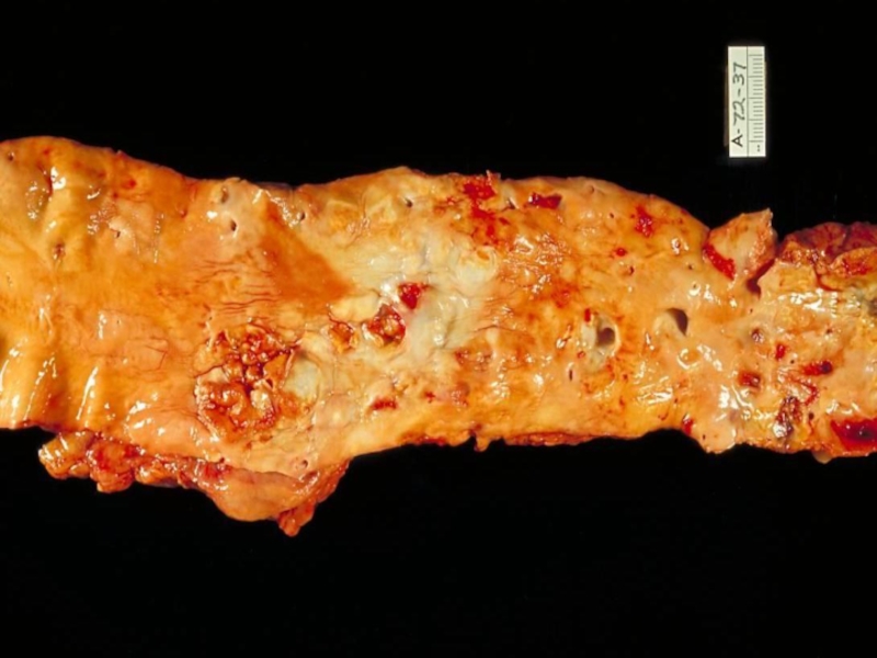 (solid, whitish formations, raised above the intima surface – atherosclerotic plaques)