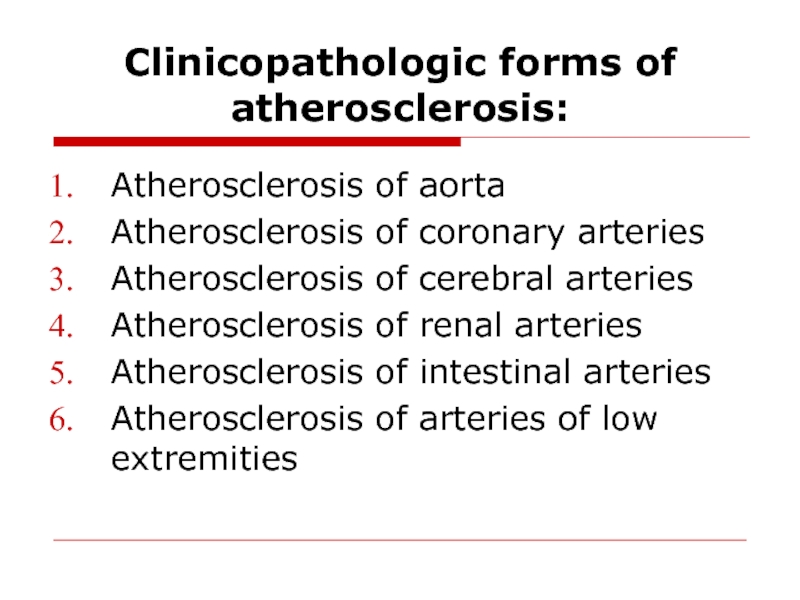 Слайд 23Clinicopathologic forms of atherosclerosis: