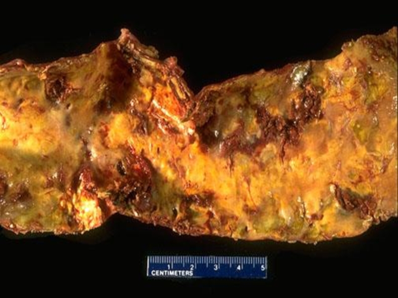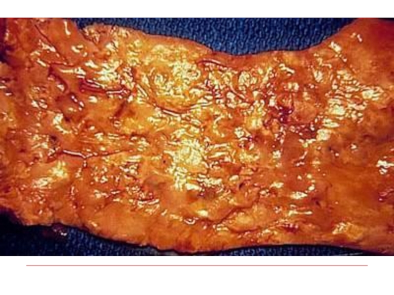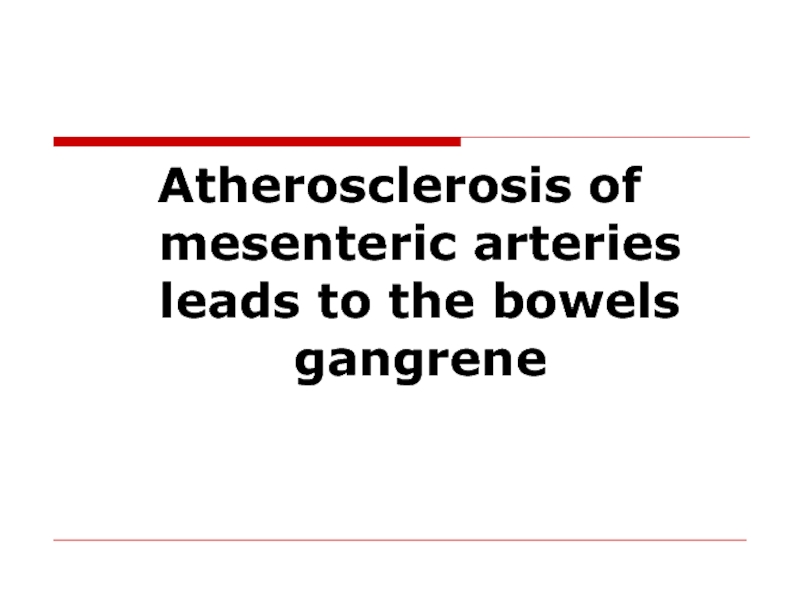 Слайд 40Atherosclerosis of mesenteric arteries leads to the bowels gangrene