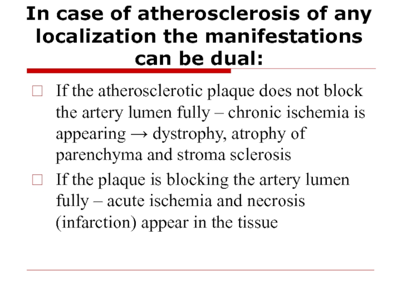 Слайд 24In case of atherosclerosis of any localization the manifestations can