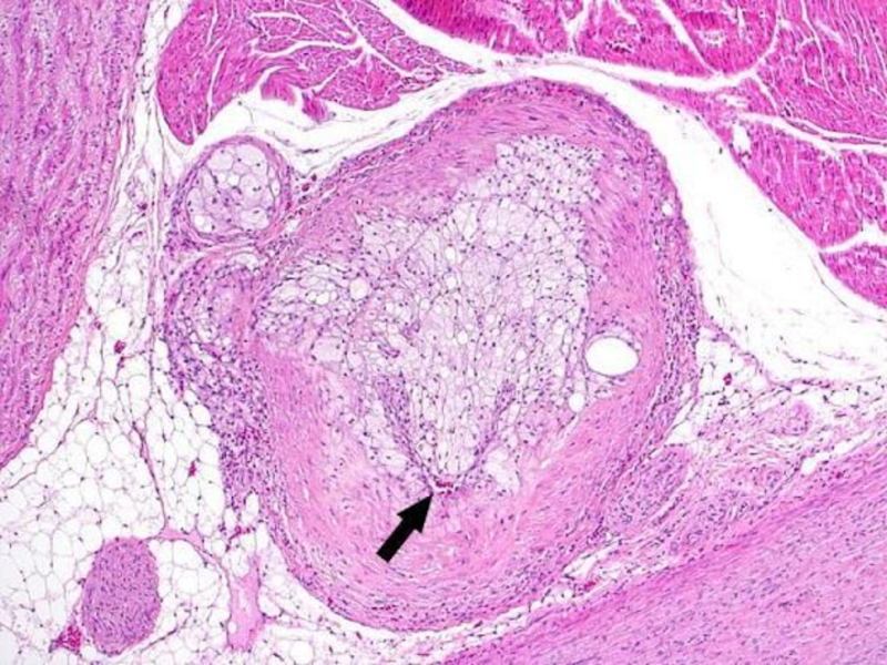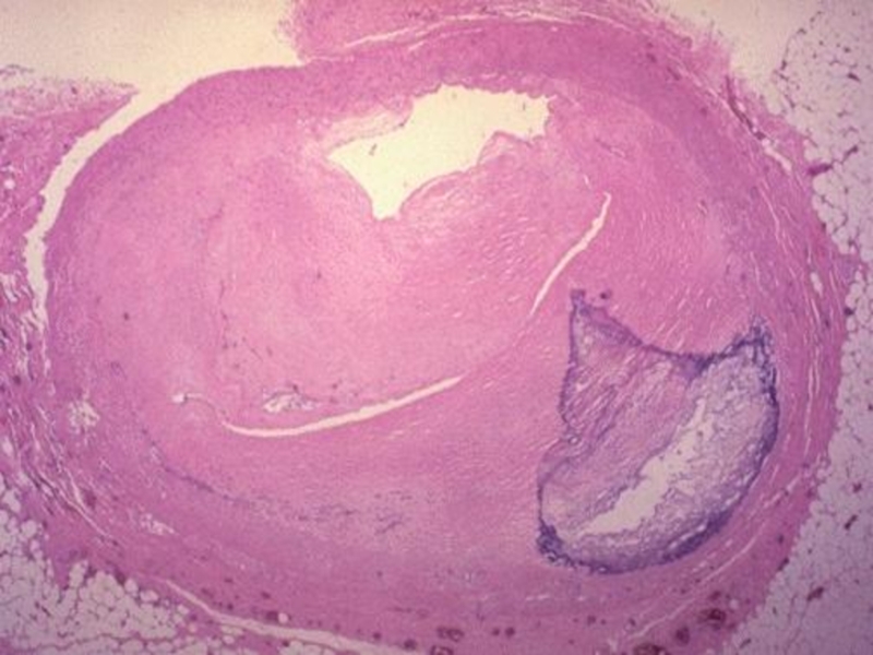 If the plaque is blocking the artery lumen fully – acute ischemia and necrosis (infarction) appear in the tissue
