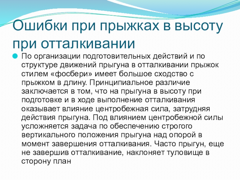 Слайд 10Ошибки при прыжках в высоту при отталкивании