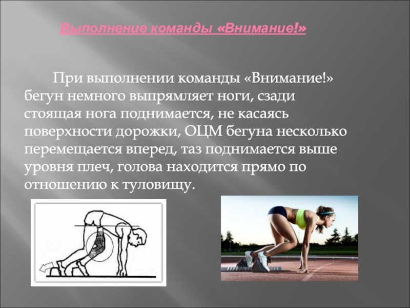 При выполнении команды «Внимание!» бегун немного выпрямляет