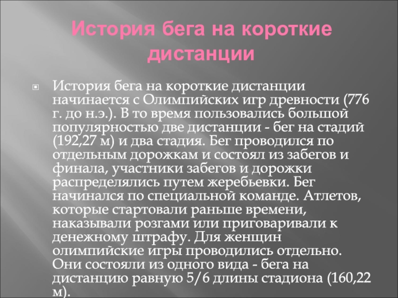 Слайд 3История бега на короткие дистанции