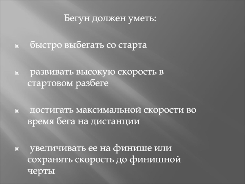 Слайд 7Бегун должен уметь: