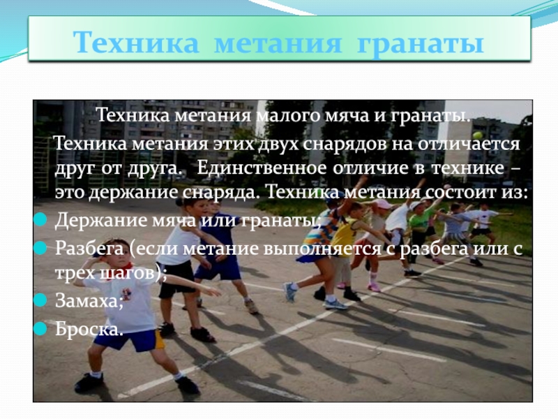 Техника метания малого мяча и гранаты.