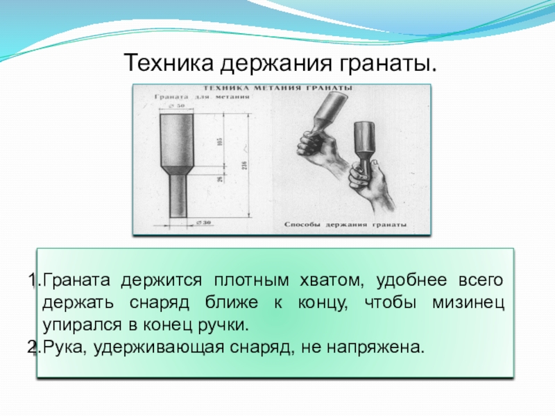 Слайд 5Техника держания гранаты.