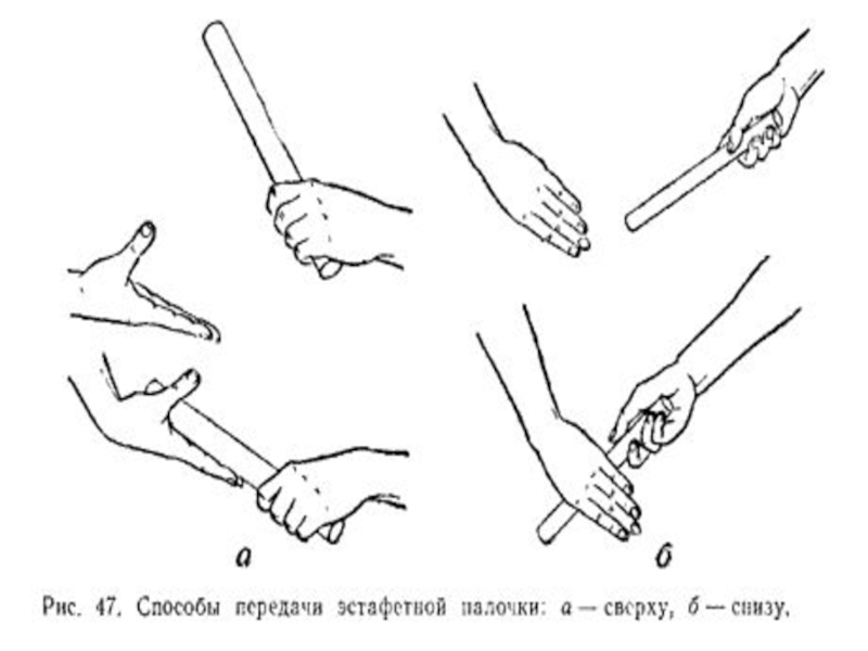 Слайд 5Существует два способа передачи эстафетной палочки по этапам в беге