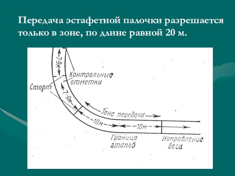 Слайд 10Передача эстафетной палочки разрешается только в зоне, по длине равной