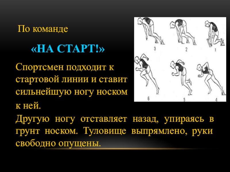 В первые годы появления легкой атлетики в Америке применяли старт с ходу, наподобие старта в конных бегах. Затем получил распространение высокий старт, когда спортсмен отставлял одну ногу назад и наклонялся вперед. На I Олимпиаде нашего времени Т.Бёрк впервые показал низкий старт на официальных соревнованиях, хотя он был предложен в 1887 г. известным американским тренером Мерфи и впервые был применен его соотечественником Шеррилом. Стартовали они из небольших ямок, вырытых в грунте. Появившиеся в 30-х гг. XX в. стартовые колодки позволили усовершенствовать технику низкого старта.
