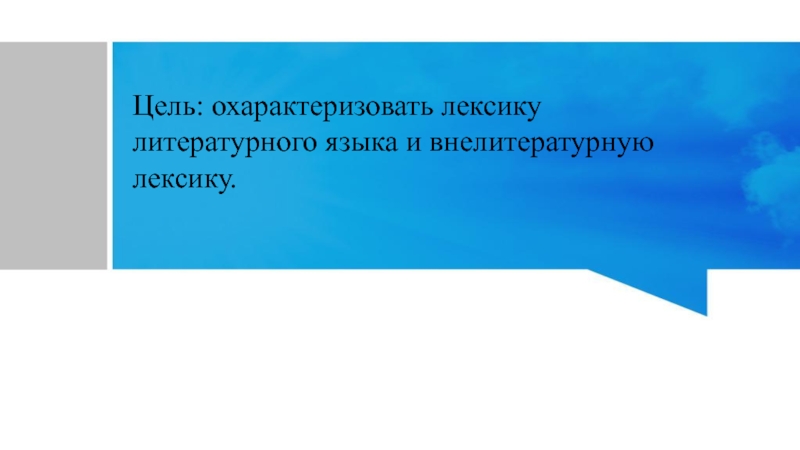 Слайд 2Цель: охарактеризовать лексику литературного языка и внелитературную лексику.