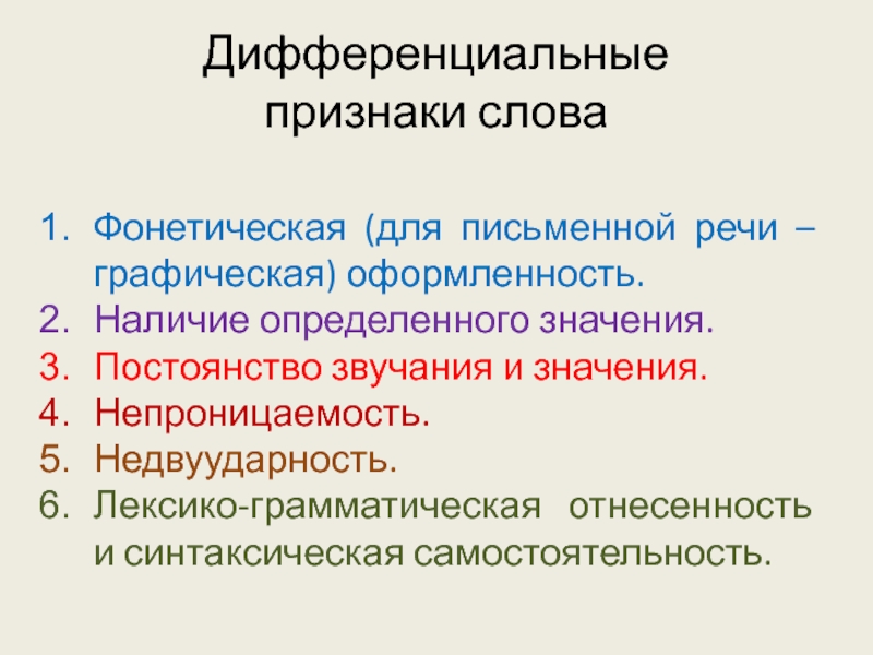 3. Выделимость – каждое слово обладает фонетическими, семантическими и грамматическими признаками, на основании которых оно выделяется в тексте.
