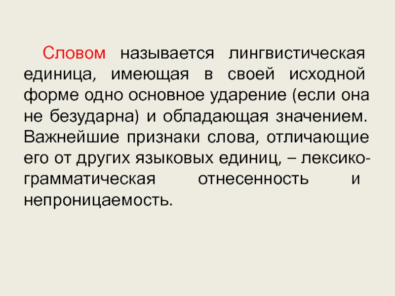Слайд 17Словом называется лингвистическая единица, имеющая в своей исходной форме одно