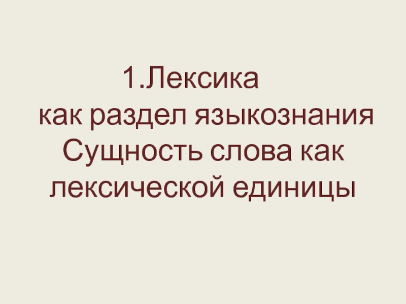 Лексика как раздел языкознания. Сущность слова как лексической единицы.