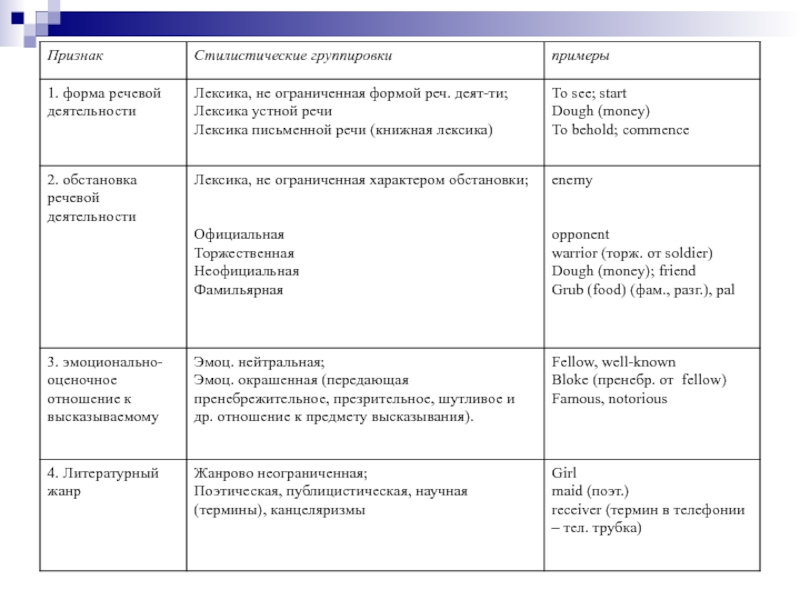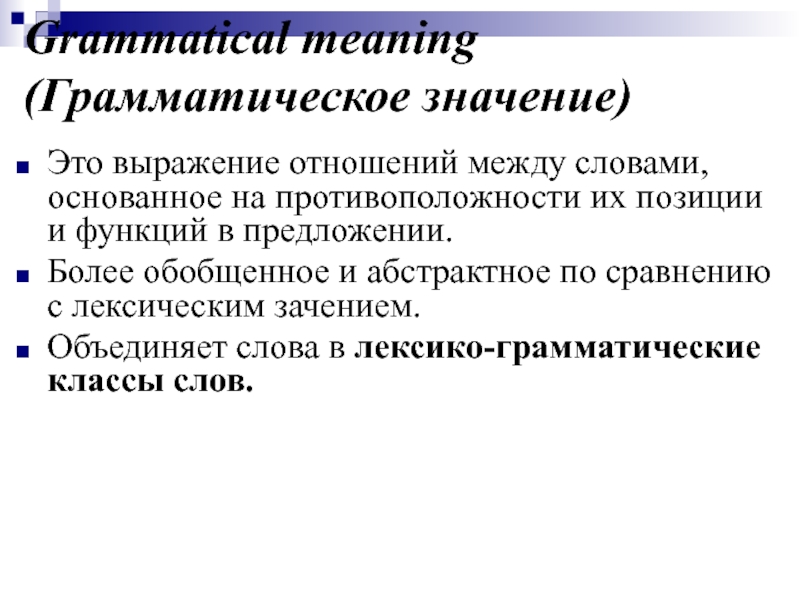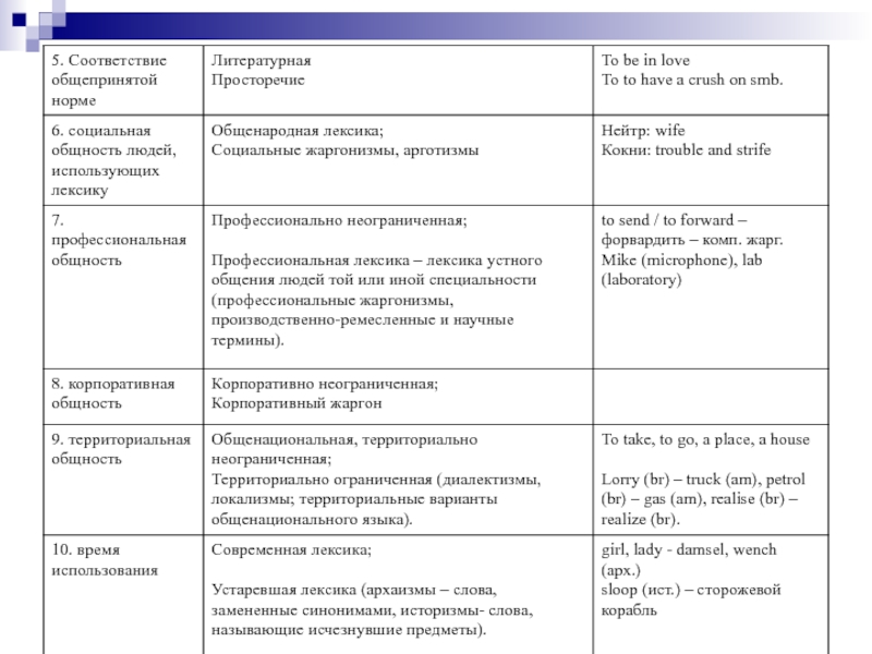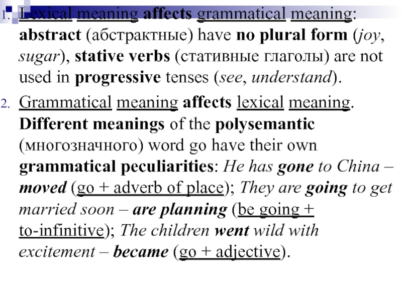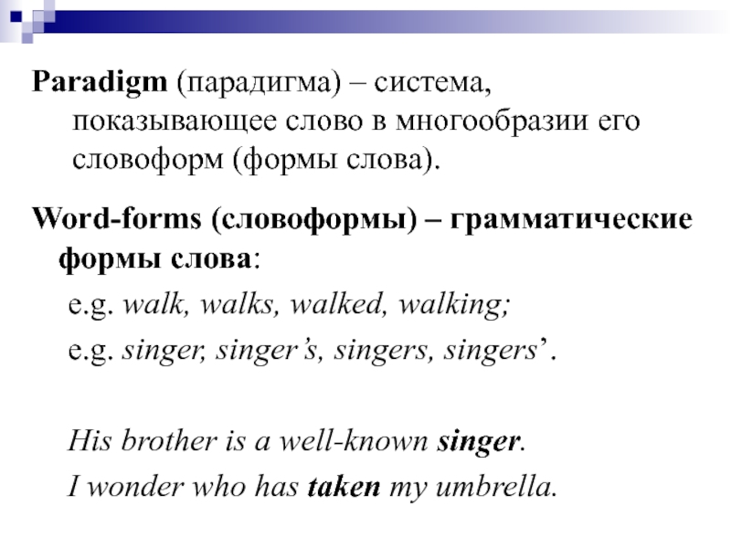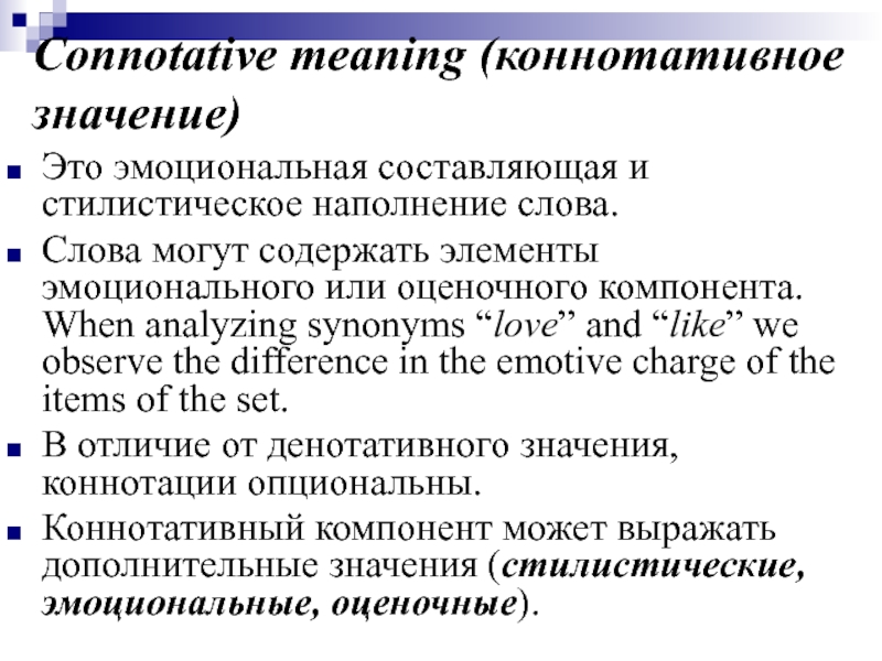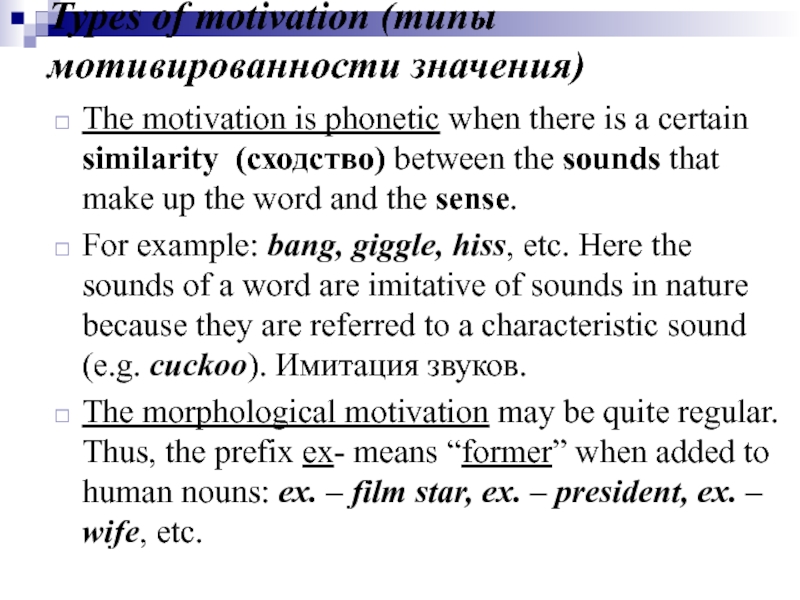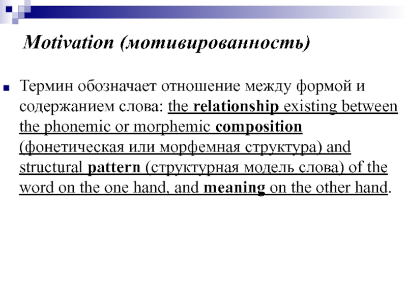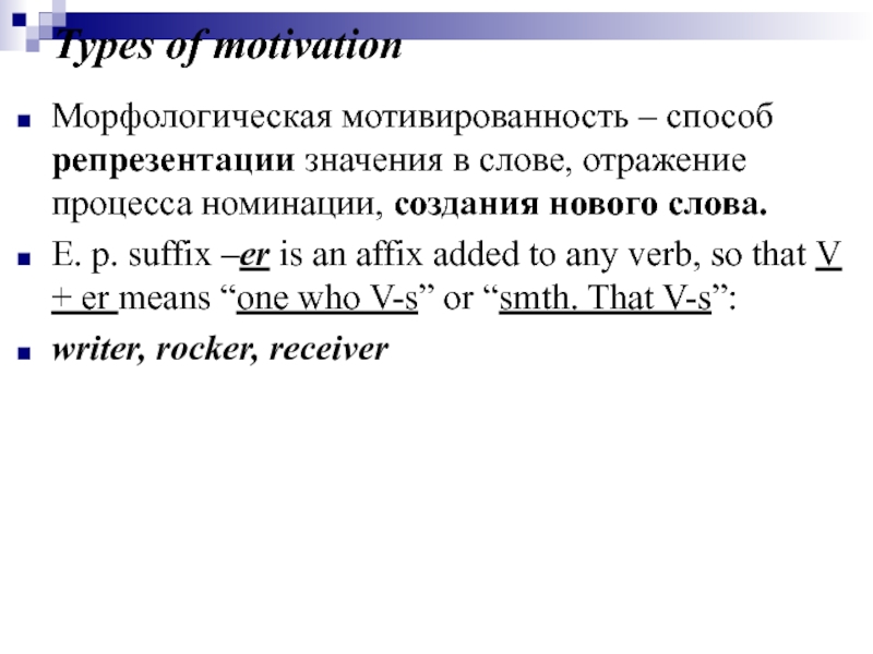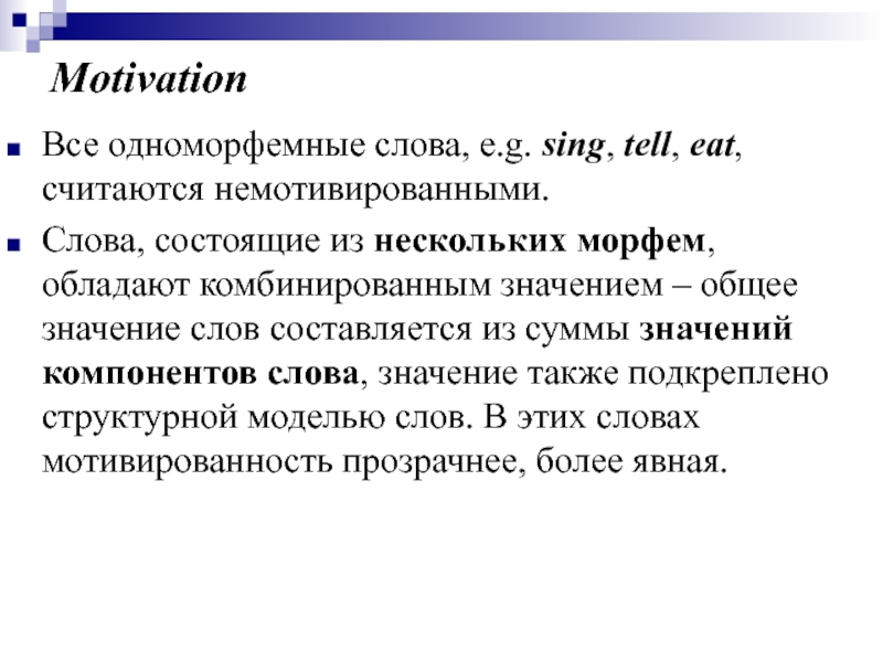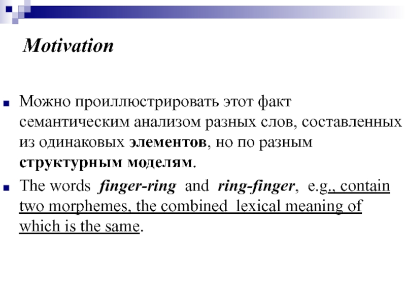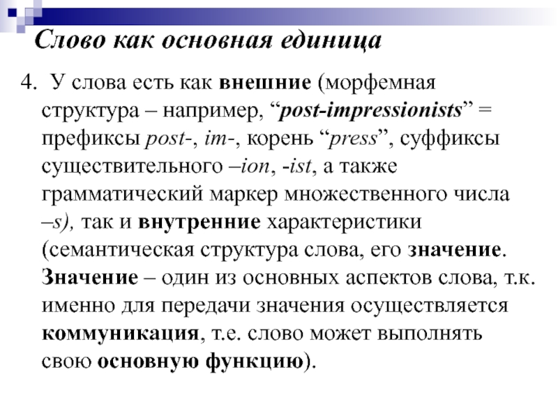 суффиксы существительного –ion, -ist, а также грамматический маркер множественного числа –s), так и внутренние характеристики (семантическая структура слова, его значение. Значение – один из основных аспектов слова, т.к. именно для передачи значения осуществляется коммуникация, т.е. слово может выполнять свою основную функцию).