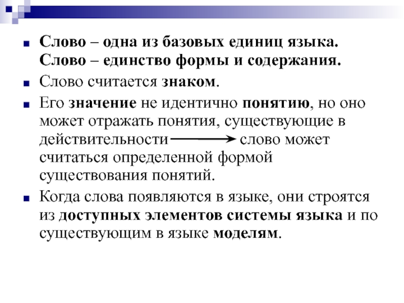 Слайд 15Слово – одна из базовых единиц языка. Слово – единство