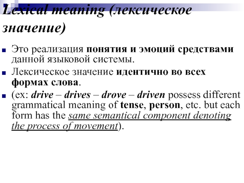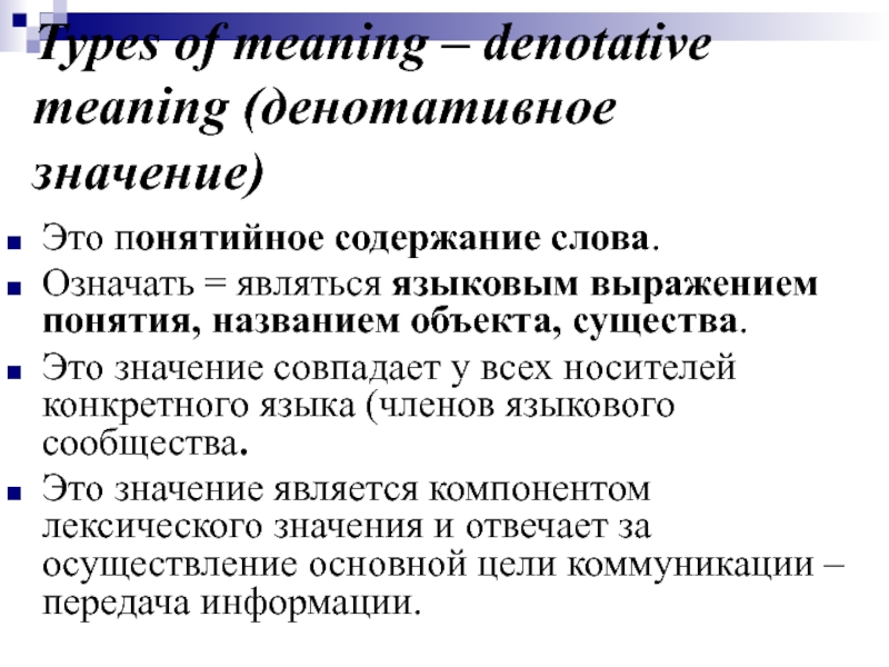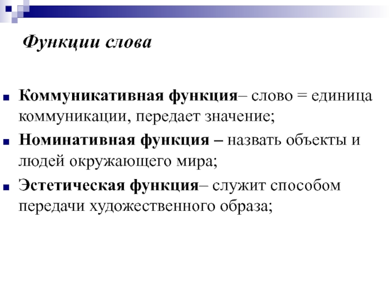 Коммуникативная функция– слово = единица коммуникации, передает значение;