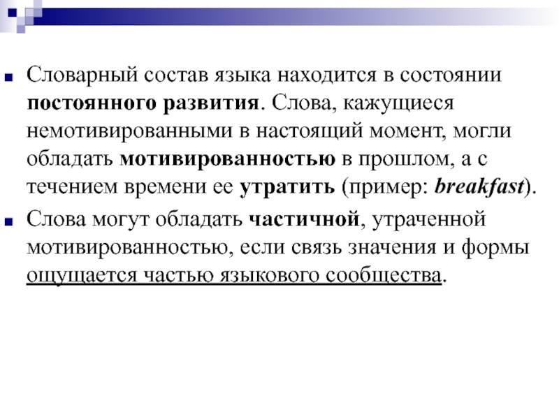 Когда слова появляются в языке, они строятся из доступных элементов системы языка и по существующим в языке моделям.
