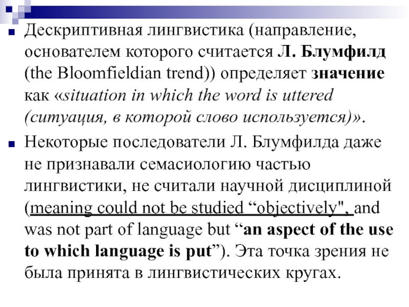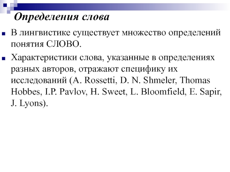 Rossetti, D. N. Shmeler, Thomas Hobbes, I.P. Pavlov, H. Sweet, L. Bloomfield, E. Sapir, J. Lyons).
