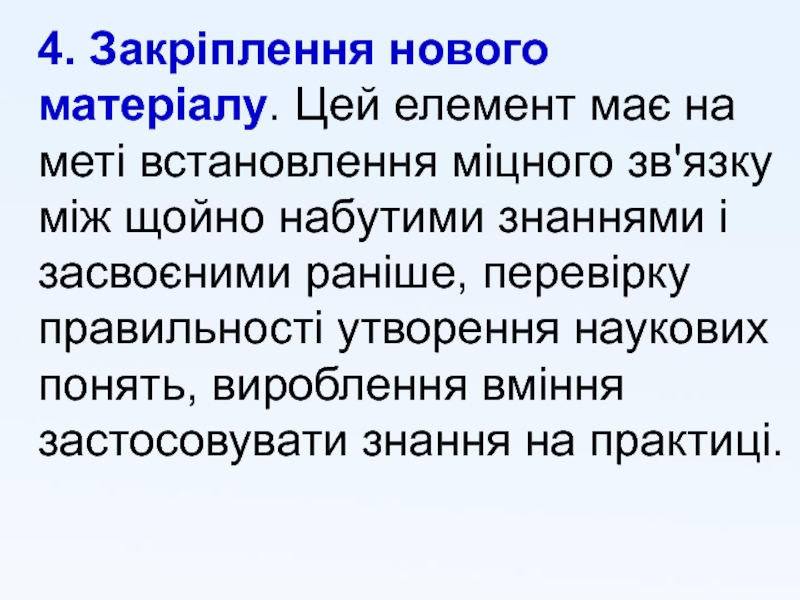 меті встановлення міцного зв'язку між щойно набутими знаннями і засвоєними