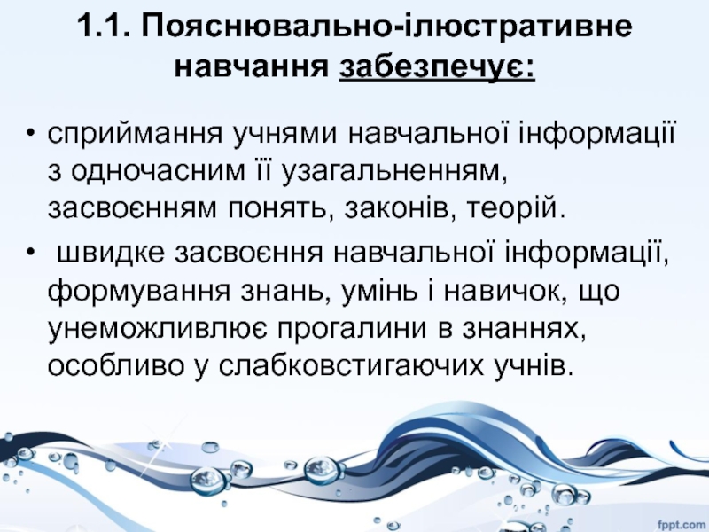Слайд 51.1. Пояснювально-ілюстративне навчання забезпечує: