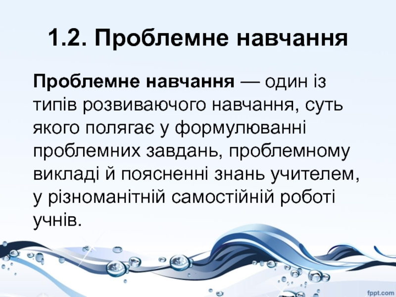 розвиваючого навчання, суть якого полягає у формулюванні проблемних завдань, проблемному