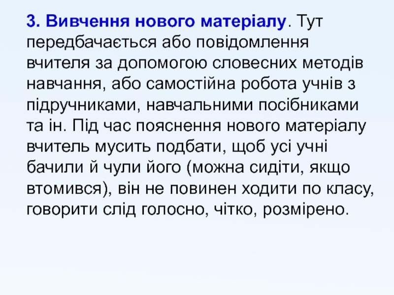 Слайд 53 3. Вивчення нового матеріалу. Тут передбачається або повідомлення