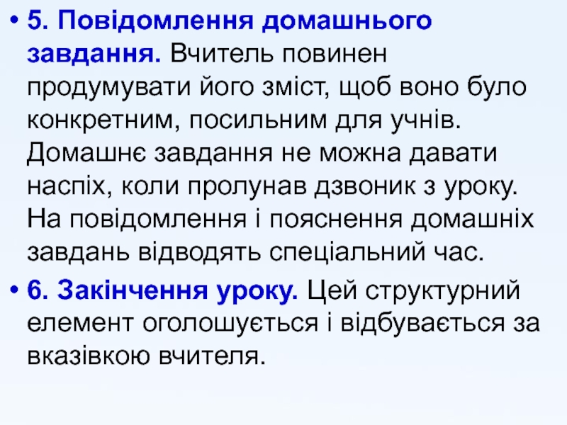 Слайд 555. Повідомлення домашнього завдання. Вчитель повинен продумувати його зміст, щоб