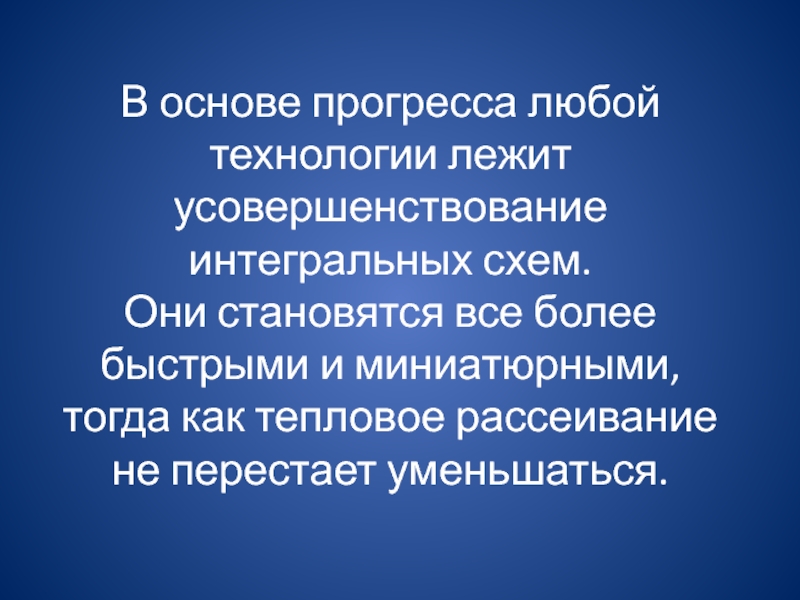 Слайд 22В основе прогресса любой технологии лежит усовершенствование интегральных схем.