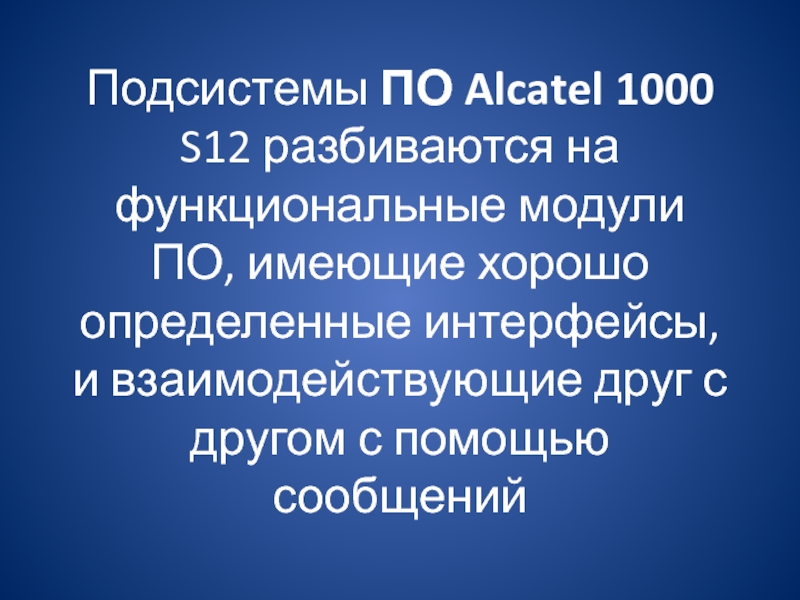 Слайд 5Подсистемы ПО Alcatel 1000 S12 разбиваются на функциональные модули ПО,