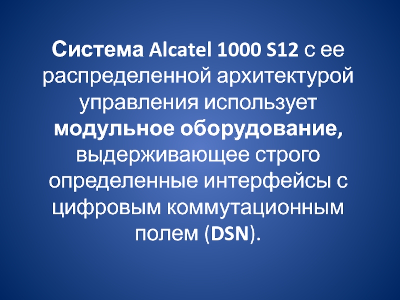 Слайд 19Система Alcatel 1000 S12 с ее распределенной архитектурой управления использует