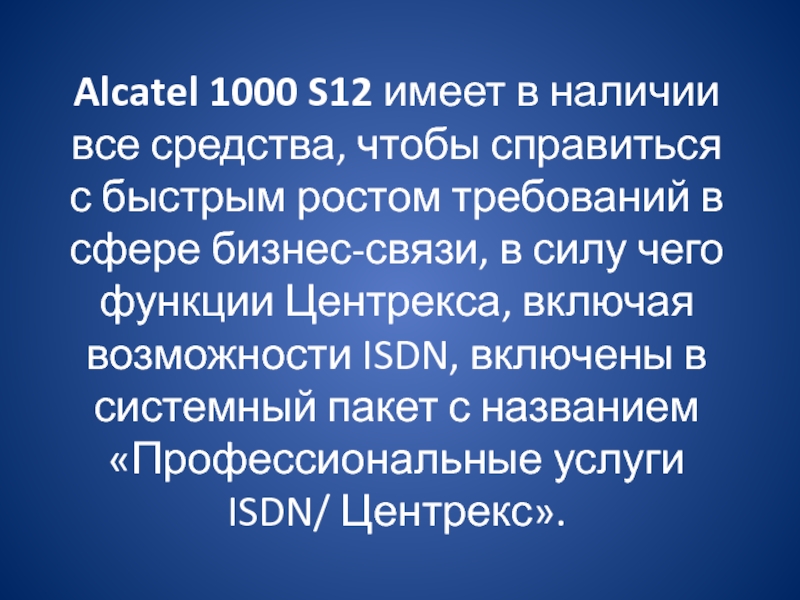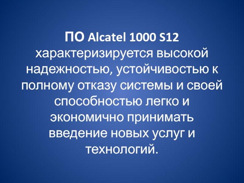Слайд 7ПО Alcatel 1000 S12 характеризируется высокой надежностью, устойчивостью к полному