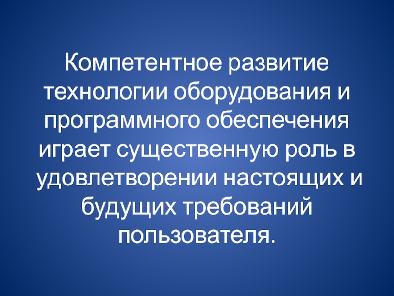 Слайд 17Компетентное развитие технологии оборудования и программного обеспечения играет существенную роль
