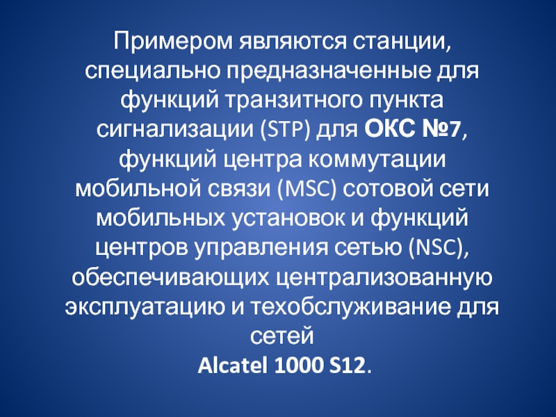 Слайд 12Примером являются станции, специально предназначенные для функций транзитного пункта сигнализации